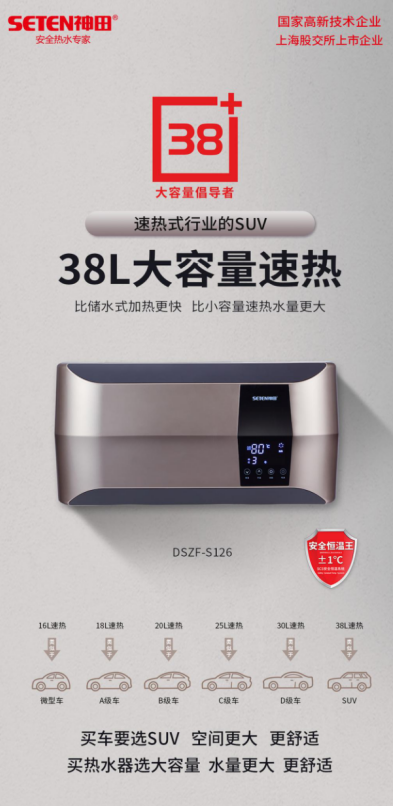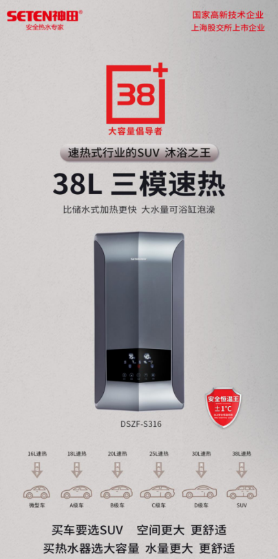 持续开发大容量速热产品,38升大容量速热也会热销 因为S112的销售火爆,使得神田集团坚定了开发大容量速热的信心。2021年,神田又推出38升大容量速热S126/S316。