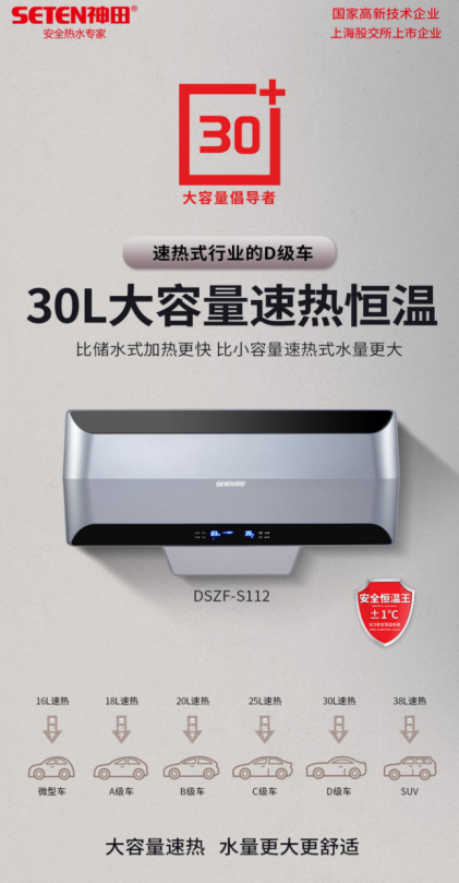 2020年10月,速热式行业的领导品牌神田推出了30升大容量速热S112,经过一年多的销售,这款产品现在已经成为了神田集团销量最好的一款产品之一。