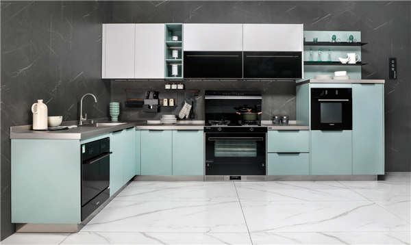 亿田集成厨房,采用岩意抹茶、冰激凌白、奶昔莓红等高端专属格调配色.不锈钢覆膜石纹门板,还原自然肌理,沉稳大气,极具魅力,更在素雅中深藏清凉感觉,为您抵消厨房扑面而来的极致闷热感。