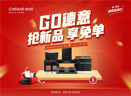 本次超品日,除德意现有产品外,德意两大年度重磅新品——蒸烤均衡集成灶、O宇宙油烟机也一并加入优惠行列,不仅有尝新价,还有购买即加赠正价在售的德意产品(如洗碗机、燃气热水器)等吸睛福利。