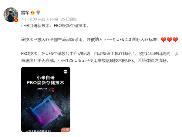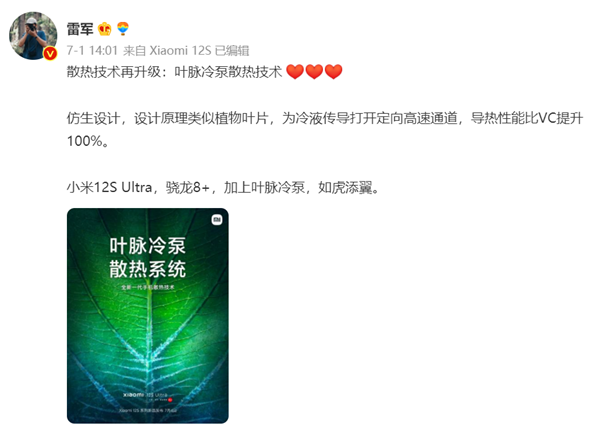 此外,雷军还发布了小米12S Ultra的电池技术、FBO焕新存储技术、叶脉冷泵散热技术、有机硅素皮等等。
