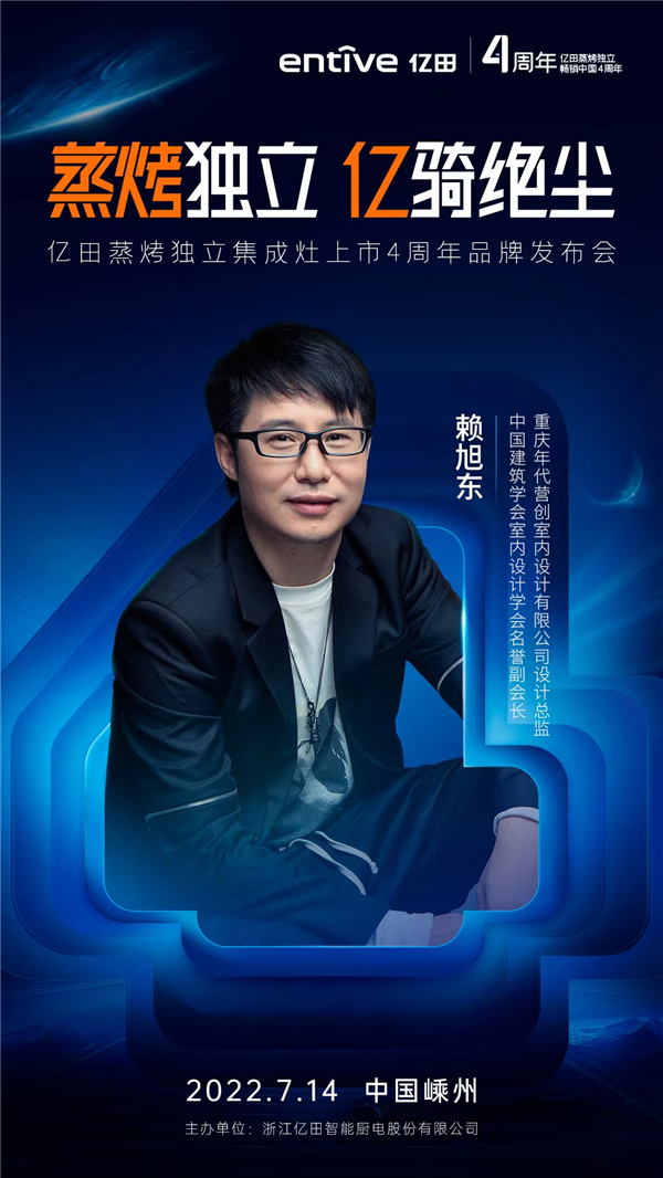 蒸烤独立,亿骑绝尘!7月14日,亿田蒸烤独立集成灶上市4周年品牌发布会重磅启幕!与亿田x赖旭东,回到初心开始的起点,蒸烤独立集成灶品类新征程,即将扬帆启航!