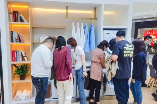 以用户需求为中心,从用户的实际生活应用出发,惠而浦进行营销场景的升级,通过门店的多场景体验与用户产生“共情”,例如洗衣机产品结合洗漱台、晾衣架等元素,模拟用户家庭阳台场景,打造洗烘一体机叠放样板,让更多消费者在体验洗衣机“智氧除菌”、“顽渍净”等优质性能的同时,可以同步体验干衣机衣干即停、即干即穿的高品质健康生活。