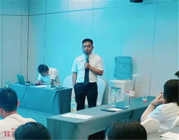 会上,佳歌集成灶营销总经理黄成以“佳歌新时代”为主题进行了内容分享。黄总提到,公司始终坚持以市场为中心,经销商为重心,品牌投入持续加码,培商育商工作从未间断,上半年在公司和经销商共同努力的基础上,各方面都取得了丰硕的成果。他表示,行业当前进入了发展新阶段,竞争更加激烈和多元化,未来我们要用更高维度的眼光看待行业的发展,拥抱时代变化,提前布局,只有洞察行业发展,提前做好集成灶在当地的渠道布局,才能抓住转型升级的机会,充分利用产品优势,加快门店形象和服务的升级,加大品牌声量,深化品牌口碑!