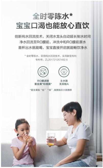 每天的第一杯水应该是纯净而甘甜的,但传统的净水器经过一晚静止后,废水中的溶质会渗透RO膜进入纯水端,使第一杯水的TDS值会很高,无法饮用。为此,美的白泽净水器,针对这一问题进行了攻克,创新采用了纯水回流技术,让你用鲜活好水开启一天的生活,让珍爱的ta在放心直饮中感受到细致入微的关心和爱意。