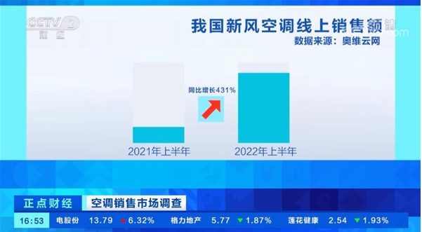 央视《正点财经》报道,由于人们对健康生活和空气质量的需求越来越高,能够实现室内外空气流通增氧的新风空调已经成为空调品类中的热门趋势产品。这是因为传统空调在制冷的同时,无法对密闭的房间进行通风增氧,而新风空调的出现刚好解决了这一由来已久的痛点。新风空调与生俱来的“新风”基因,满足了当下人们对于健康生活的追求,这也是渠道、厂商共同努力助推新风空调普及的重要原因之一。