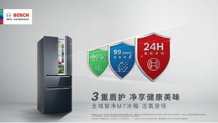 该款冰箱的第2重盾护“活氧除菌”,则通过博世创新活氧科技产生健康活氧,有效杀灭99.999%2的细菌和99.98%3的病毒;若启动强力净化模式,更能实现快速除菌净化效果。
