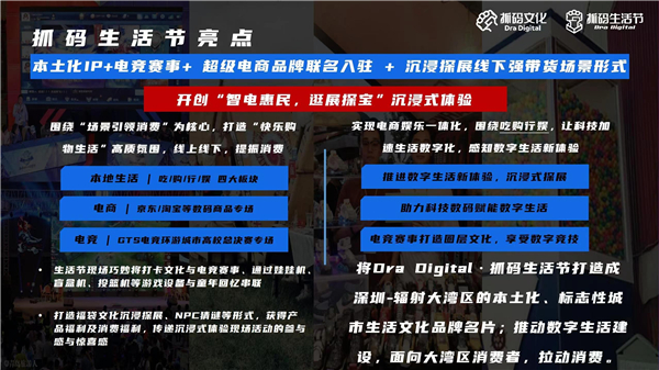 在亮点打造上,抓码生活节,通过“本土化IP+电竞赛事+超级电商品牌联名入驻+沉浸探展线下强带货场景”形式,开创“智电惠民,逛展探宝”沉浸式体验;围绕“场景引领消费”为核心,打造“快乐购物生活”高质氛围,线上线下,提振消费;政策扶持之下,开启百万参展扶持计划;实现电商娱乐一体化,围绕吃/购/行/娱,让科技加速生活数字化,感知数字生活新体验;生活节现场巧妙将打卡文化与电竞赛事、通过娃娃机、盲盒机、投篮机等游戏设备与童年回忆串联,C端客群增加氛围感;打造福袋文化沉浸探展、NPC猜谜等形式,传递沉浸式体验现场活动的参与感与惊喜感。