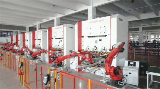 在金帝智能厨电产业园,工业机器人代替了传统人工高质量完成各项生产程序。过去,生产的零部件要靠人工取出,耗时耗力,还有很大安全风险。如今,金帝六轴机器人包揽了这个工作,更省时、更准确、更安全。
