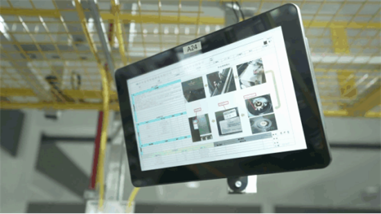 这同样称得上是金帝生产线上的一道靓丽风景线——形如小电视一般的SOP(作业指导书)电子看板,可不能小瞧这一个个看板,它们能对不同型号产品做出指导,摆脱人工抄写录入工作,减少人为差错,提供精细的信息,提高车间工作效率。