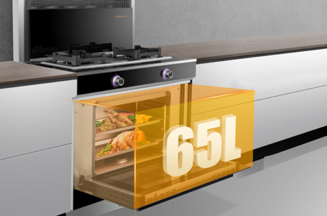 金帝X901ZK蒸烤一体集成灶的蒸烤箱不同于普通蒸箱烤箱,它的容量高达65L,可以利用的空间更大,对于普通家庭来说使用绝对够用,一次可以容纳更多的食物,即使是家里来客人了,海量美食也能一步到位。免去了小容量蒸烤需要多次频繁操作的麻烦,不再手忙脚乱。