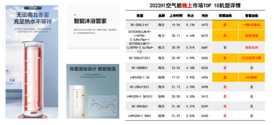 就目前而言,电辅双模已基本占据热销榜,智能加热成为增长趋势。在线上TOP10机型中,9款都是双模加热模式,5款都有智能加热模式。另外,在线上TOP10机型中,6款产品为一级能效。同时,地方促销政策带来新机遇,比如安徽淮安、阜阳的补贴政策中都明确提出能效等级。可见,能效升级是必经之路。