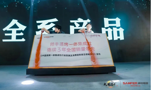 发布会上,围绕集成烹饪中心、集成水洗中心两大中心,帅丰重磅推出了X系列、S系列、E系列、D系列四大系列近二十款新品,并进行了全新产品视觉系统、智能控制交互系统、5.0斑彩螺风道系统、两大高效蒸烤系统四大系统全面革新,为消费者打造更便捷智能的交互体验、更多维功能的场景体验、更健康高效的烹饪体验。与此同时,配合新战略、新产品,帅丰推出了“厨房新标配,帅丰有1套”的产品slogan,引领行业进入场景消费新赛道。此外,帅丰还升级了5.0善食文化SI系统,从膳养、膳器、膳形、膳用、膳厨六大方面营造了极具体验感的场景空间,深刻传递着帅丰“健康烹饪,善待家人”的品牌价值,打造了全新的帅丰终端零售竞争力体系。