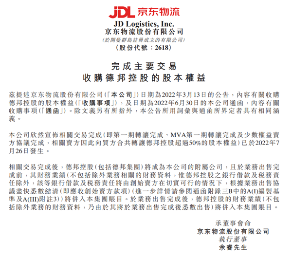 据相关人士表示,标的股份交割后,虽然德邦实控人发生变更,但未来德邦还将继续保持品牌和团队独立运营,德邦的团队和服务的稳定性并不会受到影响。