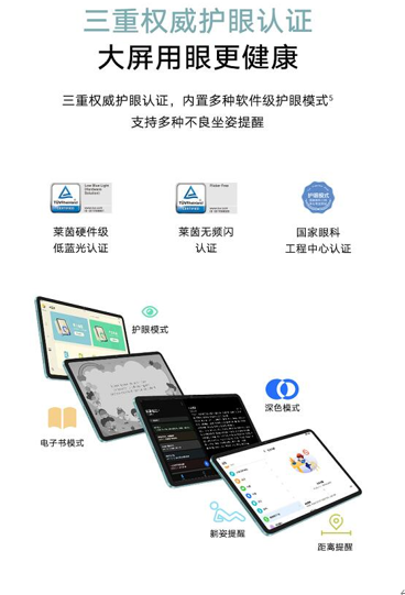 基于此,荣耀平板8推出了行业首个12英寸屏幕,首先在尺寸方面就符合健康专家提倡的“大屏护眼”标准。此外,荣耀平板8还拥有2K分辨率、10.7亿色彩显示,画面清晰细腻不伤眼;并支持莱茵硬件级低蓝光,获得了莱茵无频闪认证以及国家眼科工程中心护眼认证,三重权威护眼认证打造档位最全护眼方案。