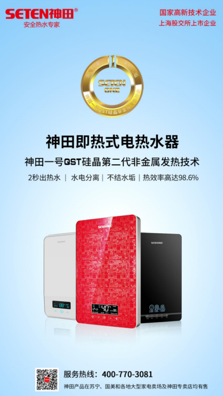据悉,神田集团始创于1997年,专业专注于热水器生产20多年,目前,神田已经在全国有代理商300多家,销售网点10万多个,天猫、京东等全网有售,产品线丰富,渠道全覆盖,是行业增长快速的品牌之一。