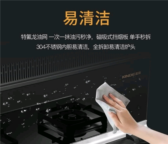 当吸排油烟不够强力时,做饭很容易被熏的呼吸困难,积累的油烟还很难清洁,长期处于这种环境下很容易影响身心健康!金帝集成灶在这方面吸油烟做极为出彩,该灶采用智能变频电机,内置深V负压风道,外加设计上的低空宽域拢烟和五重油烟分离技术,不仅拥有1000Pa最大静压和21m3/min的大风量,可以深空劲吸,强力吸排油烟!而且油烟吸净率高达99.99%,避免油污堆积,日常清洁维护更省心!改善了厨房的油烟环境,自然我们用的就更健康!如此强力的吸油烟,因为油烟而讨厌下厨的人们,请行动起来呦!尽情发挥你的烹饪才能!
