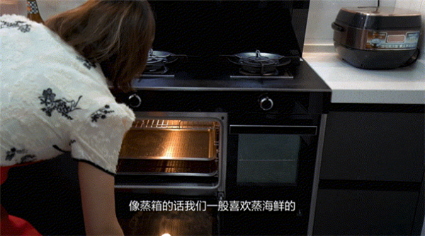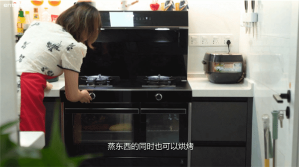“把蒸的放进去,把烤的放进去,等我把菜炒好以后两边就同时好了,这样就是省时间,我以前如果蒸一个东西再去炒菜的话,就要差不多将近一个半小时左右,我现在把菜洗好做好,饭煮好,差不多40分钟就可以搞定了,像蒸的烤的炒的全都出来了,节约时间嘛。”