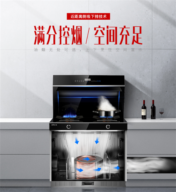 亿田S8E蒸烤独立集成灶,设置29CM高度挡烟板,实时黄金控烟;搭载精心研制25cm直径特氟龙风轮与下置风机颠覆式创新结构,强效控烟、拢烟、排烟,99.95%油烟吸净率,油烟更少,清洁便利,下厨时候心情更美丽,不用担心“油烟”满屋影响孩子的呼吸,这也是肖女士倾心亿田集成灶的一大原因。