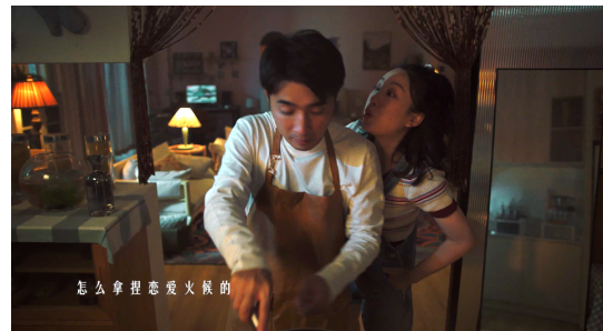刚搬进新家时,女孩兴奋地规划着未来的生活,客厅、厨房,洒满阳光的窗边和最爱的他都在身边。万家灯火中,厨房里是男友忙碌的身影,尽管自己是厨艺菜鸟把菜烧焦,但她在闹,你在笑。跃动的夜光下,女孩举起酒杯大喊:未来我们是幸福的!