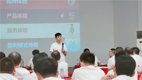 市场部部长就1-7月份终端形象提质升级情况进行了总结。他就门店设计流程内容和形象升级过程中的注意事项进行了详细剖析,接下来还将加强设计和广告画面输出内容,同时为更好地开展门店设计和品牌宣传工作,他也对全体营销人员数据和门店实际情况信息上传工作提出了要求标准。