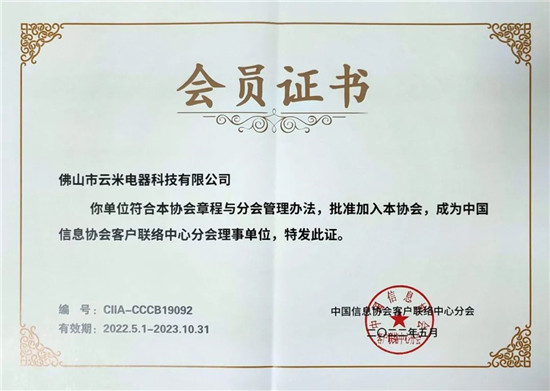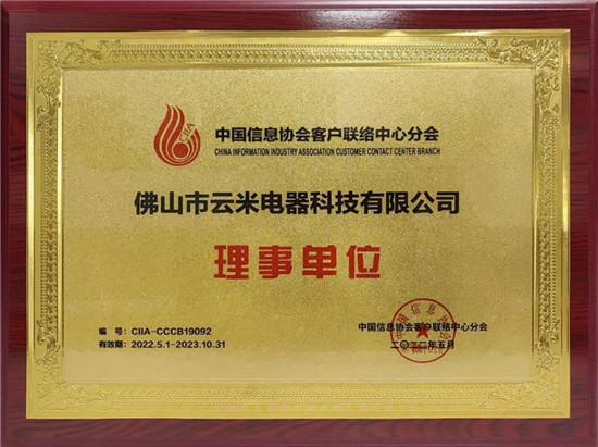 中国信息协会,成为中国信息协会客户联络中心分会的理事单位,这即是协会对云米科技品牌影响力与综合实力的认可,也是对云米科技服务管理机制与服务质量的高度肯定。