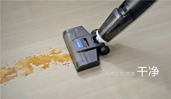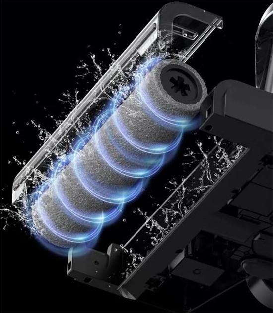 它可以实现清水实时清洗、回收滚刷脏污至污水箱,滚刷时刻保持干净状态,避免地面越拖越脏。还有一键整机自清洁功能,地面清洁后,只需轻轻一摁,一键开启整机自清洁,滚刷、管道全方面去污,省力便捷不脏手。