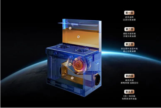 烟机模块配备了22m3/min的持久大风量,利用低空宽域拢烟,在15-25cm黄金控烟区域,迅捷吸走油烟,轻松应对爆炒时刻;采用直流变频电机赋予烟机突破阻碍的力量,在需要强力排风的时刻能释放出高达1000Pa的最大静压,对比老款性能提升29%,强势应对烹饪高峰会出现的烟道拥堵问题;搭载深V型虹吸式高负压风道系统,防止油污的扩散;五重油烟分离,不积油更洁净。