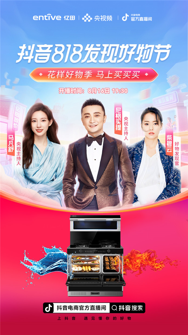 8月16日晚上19点30,由亿田总冠名,抖音官方联合CCTV主持人推出的「抖音818发现好物节」直播将在“抖音电商官方直播间”盛大开启!央视主持人“小尼”尼格买提等一众“美好生活发现官”,将联袂携手,与你共同探寻超级好物,遇见更美好的生活!