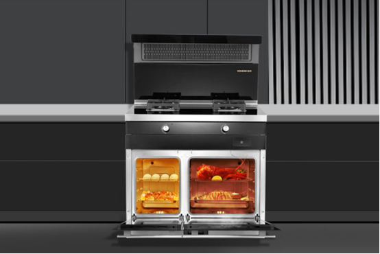 在厨房里做各种美食,难免会产生油烟,以前入手传统油烟机,或侧吸或顶吸油烟有时候会外溢,吸排效果不理想。而这款金帝BQ901ZK2双蒸一烤集成灶采用的是低空宽域拢烟+智能变频电机,并内置深V负压风道,可以实现21m3/min和最大静压1000Pa的强劲吸排动力,同时智能巡航增压,酣畅吸烟不怕油烟倒灌和外溢,油烟吸净率高达99.99%,做美食时再也不怕油烟侵扰的问题。