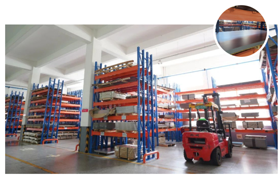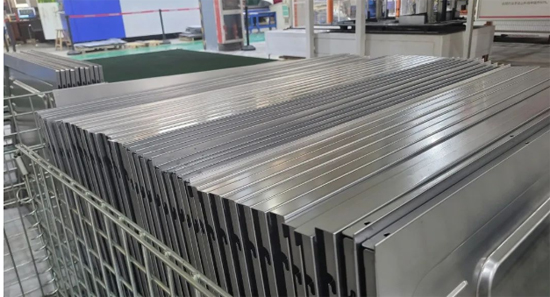 通过这四条生产线加工,一块块不锈钢板被冲压成灶台、背板、侧面板等形状,整齐地堆垛在临时储存区域。