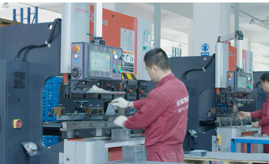 冲压完成的部件运送到智能数控折弯机进行加工,具有角度自动补偿功能,减少人工校正,加工速度快,折角处理表面美观,同时我们可以看到在折弯机配套的智能屏中,记录着各道工序的折弯角度、高度以及物料数据和时段产量,全面提高产品效率。