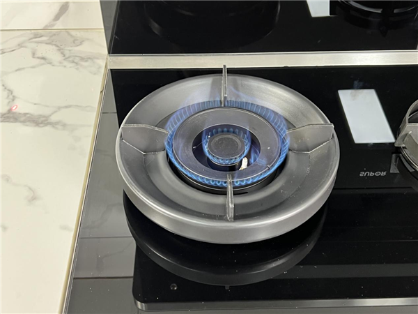 首先来测试一下。开启灶具,小火火焰稳定不飘忽,大火内外环火焰均呈现出纯净的湛蓝色。