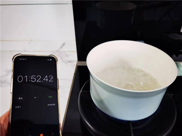 通过实验,可以看到,在大火状态下,耗时1分52秒,小锅能够烧熟500ml水。