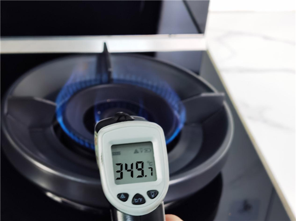经现场红外线进行火焰温度的测量,开启灶具后,仅需几秒,大火情况下温度可以达到300℃以上。