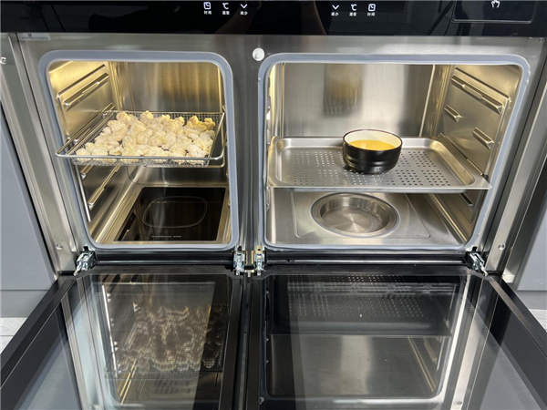 面对不断迭变的消费需求,集成灶企业的创新能力也是从未停止。蒸烤独立集成灶突破了传统集成灶单一的蒸烤一体模块,创造性地发明了左烤箱、右蒸箱两个腔体结构,实现边蒸边烤,高效节能的同时,也更加专业。