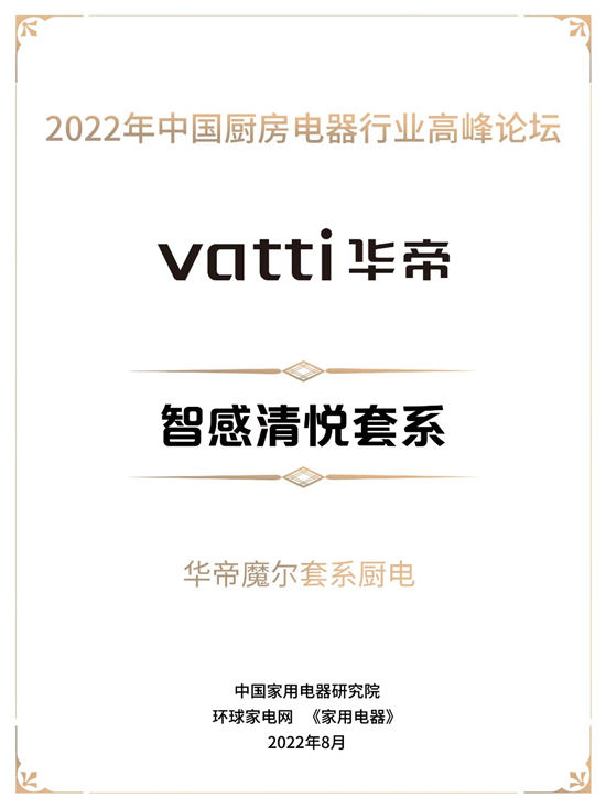 华帝魔尔套系凭借精湛工艺、创新设计、高端品质等,被授予“智感清悦套系”荣誉称号,获得业内的一致认可。正如颁奖词所言:“华帝魔尔套系具有完整的套系体验感、美观统一的外形设计、高度人性化的细节设计、智能化的操控与应用,蕴含精尖技术的功能设定。”自2021年魔尔套系推出以来,在各类展会、竞赛等场合备受业内人士、专家和评委的认可,屡获奖项。行业的奖项、荣誉是对华帝品牌创新的肯定、技术的认可。