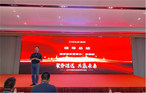 最后,德意智家董事长高德康对本次会议作了总结发言。高董表示下半年仍要坚持把○宇宙油烟机、蒸烤均衡集成灶新品作为营销利器和突破口,强化核心竞争优势,协同线上线下,集中优势资源进行推广,为德意电器、产品、经销商赋能,全力推动打造德意高质量发展与经销商可持续创收的共赢新局面。