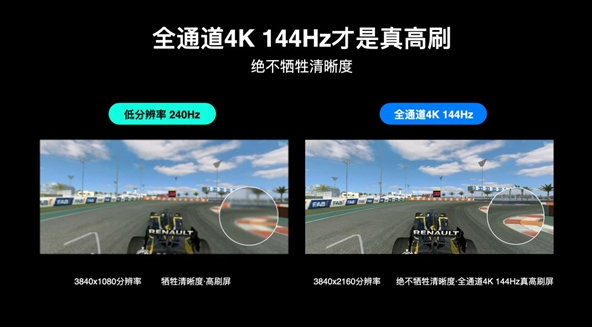 众所周知,目前电视行业存在四种高刷技术,分别是软件120Hz高刷、软件240Hz高刷、全通道120Hz高刷和全通道144Hz高刷。总有一些不具备研发高刷电视能力的厂家,通过屏体减配、插帧技术、芯片减配等隐蔽手段对电视进行“强行高刷”,而这其实是以牺牲清晰度为代价的伪高刷,往往会在画质方面有所丧失,视觉效果大大折扣。