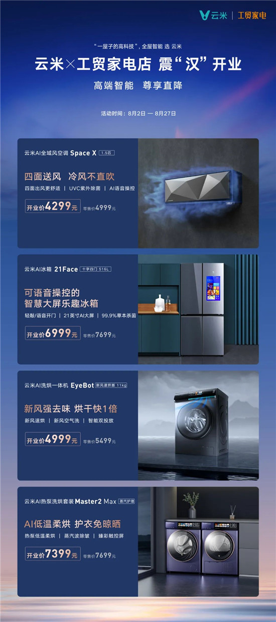 8月27日开业期间,预付¥100定金,即可获得5重特权,黑科技十足的云米AI全屋智能产品,等你来!探!索!