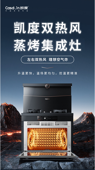 今年5月,凯度又推出了全新升级的凯度蒸烤集成中心,其中,全方位迭代的凯度蒸烤集成灶G1E无疑是重中之重,这也是凯度第一次将其行业首创的双热风技术植入到集成灶中。