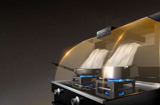 金帝月兔二号G901ZK蒸烤一体集成灶采用低空劲吸的设计,吸烟口处在10-25cm黄金控烟区,当油烟产生就能立刻吸走。其搭载智能直流变频电机,功率达到200W,可以输出强劲的动力,能感知烟道压力自动调节风压,深V型高负压风道,油烟下排更迅速,以1000Pa最大静压,22m3/min大风量,畅快排出油烟,保障厨房环境的清新洁净。