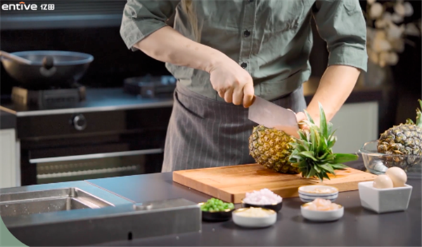 04.最关键一步!打开文武全能的亿田集成灶,太极燃烧器,5.0KW火力,让每一丝蛋液都能以最契合的姿势,与每一粒米饭悱恻缠绵,温柔包裹。再依次加入洋葱、大蒜、青豆、虾仁、腰果,荤素搭配,干果点缀;纯粹而不简单的调味,个中滋味,唯有入口,才能慢慢体会。