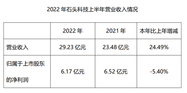 石头科技2022年上半年实现营业收入29.23亿元,同比增加24.49%;实现归母净利润6.17亿元,同比下滑5.40%;实现扣非后归母净利润5.88亿元,同比增加2.38%。2022年Q2公司实现营业收入15.64亿元,同比增加26.46%;实现归母净利润2.74亿元,同比下滑18.66%;实现扣非后归母净利润2.87亿元,同比下滑2.12%。