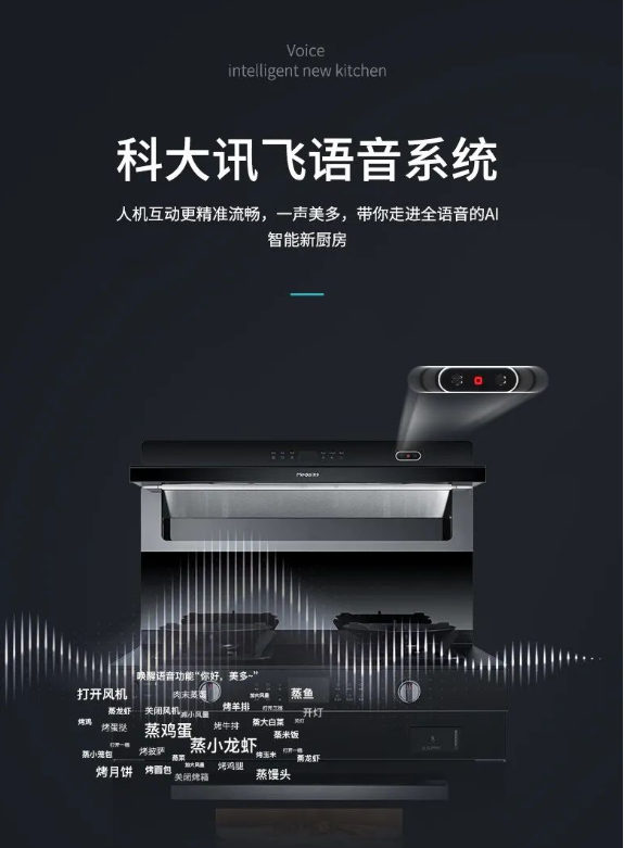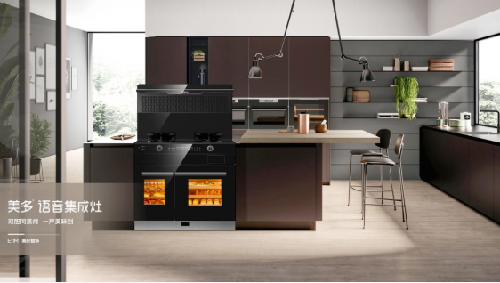 美多语音分蒸烤集成灶内置100+智能菜谱,拥有全面智能的烹饪模式,包括多元化的蒸烤、高温消毒、发酵等,还先后与国内两大头部智能企业——科大讯飞、华为鸿蒙系统展开紧密合作,让现代厨房更智能便捷。