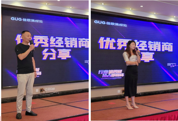 会议还特别邀请了两位佳歌优秀经销商代表现身说法,他们分享了最初加盟佳歌的故事以及加盟后获得的各项总部扶持。他们话语中发自内心地肯定了佳歌的产品品质和各项服务。其中一位经销商提到,开业之初,帮扶人员协助门店团队分析市场、走访客户、跑小区、做活动,后续还有常态化的各类培训,让整个团队从不懂到样样精通,佳歌真正做到了全程无忧的保姆式服务。