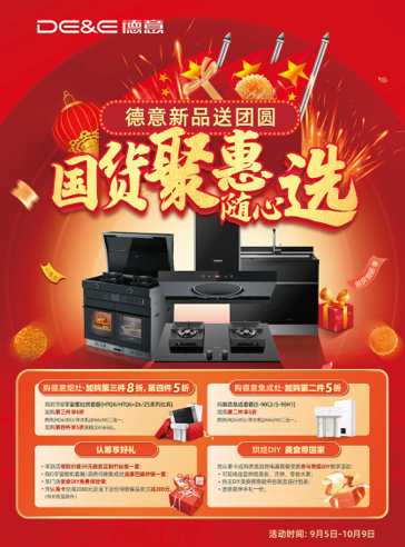 为了增加消费新体验,德意电器不仅在产品套餐上推陈出新,更是精心策划了“认筹卡、拍中秋月圆照、晒团圆饭、烘焙DIY美食带回家等”丰富的体验活动,还有“德意七件套、伴手礼”等豪礼相送,在双节期间,和家人朋友,一起创造精彩的瞬间,点燃生活的烟火气。