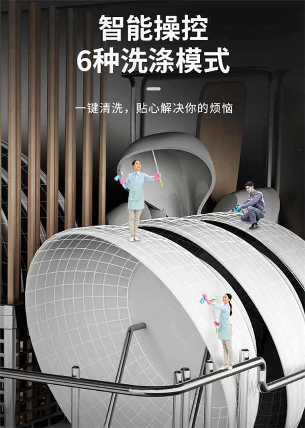 亿田XE92P集成水槽洗碗机拥有针对不同场景的六种洗涤模式,完全适配不同程度的脏污油腻、不同材质餐具的洗涤需求,一键选择,放心清洗。