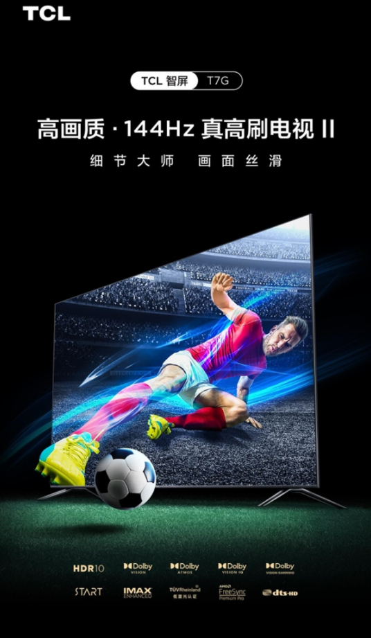 TCLT7G高画质·144Hz真高刷电视II是全通道4K144Hz真高刷,不仅屏幕硬件支持144Hz,而且在数据接口、芯片、软件算法等方面均支持4K144Hz的全通道呈现,画面不会因为解码片源、通道接口、网络投屏而无法实现144Hz高刷的流畅度,真真切切得实现了高刷新率、高清画质体验。