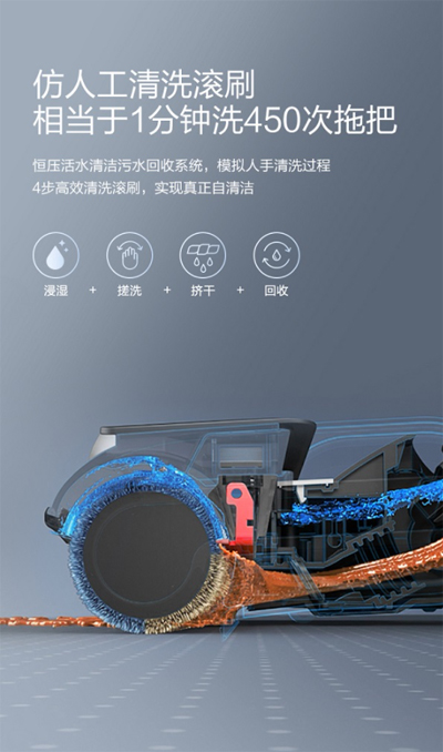 行业首创的水电双续航,可以做到40分钟不加水不倒污水不断电。后轮搭载的双电机,搭配智能算法,让前推后拉真正省力。双贴边、全水质电解水除菌等功能,它也不在话下。